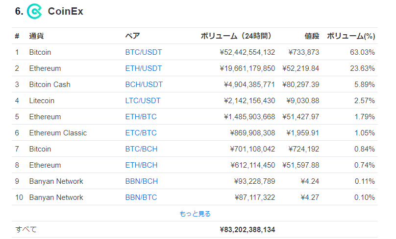 主な上位通貨はこちら